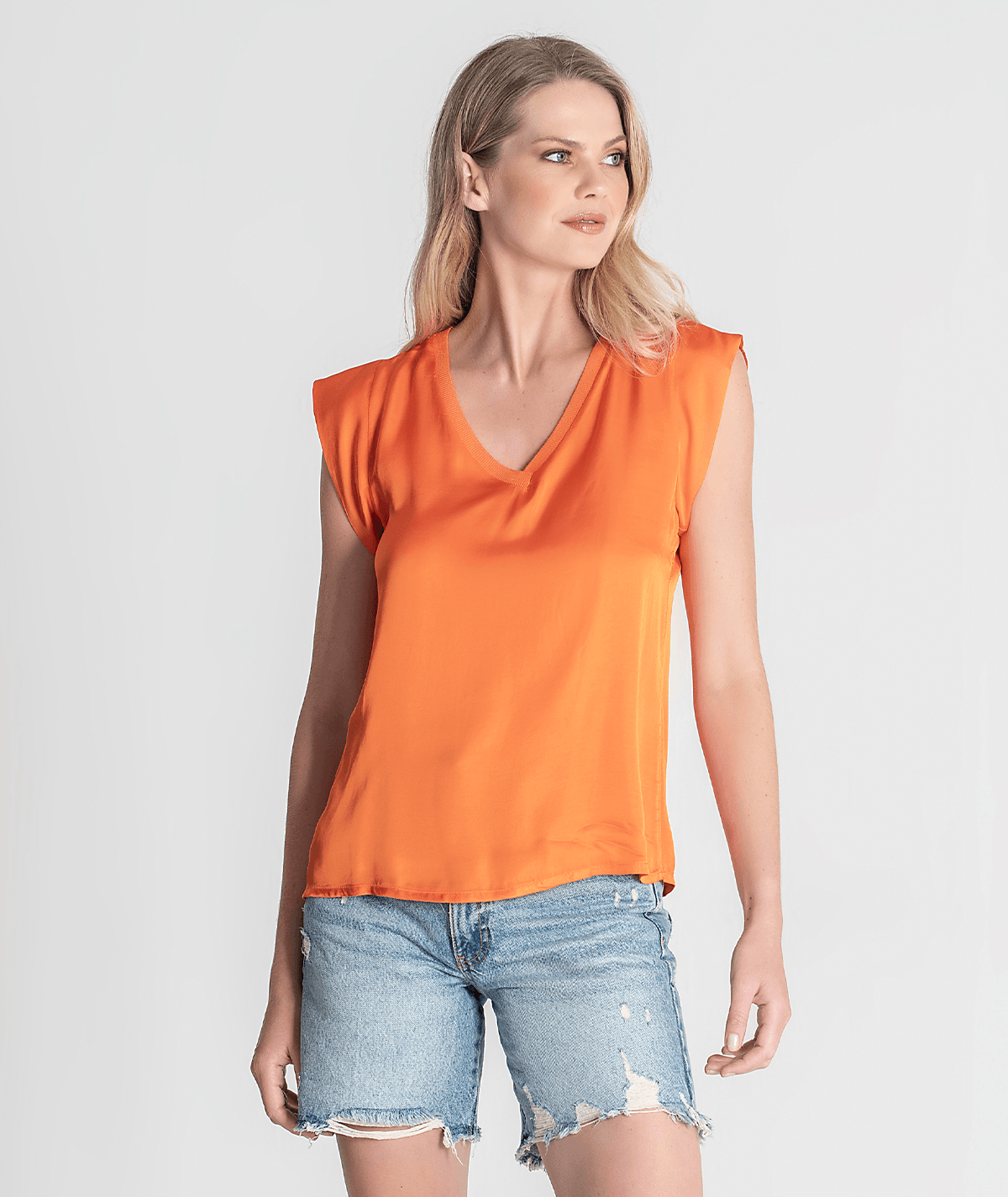 Blusa Acetinada Decote V Manga Curta