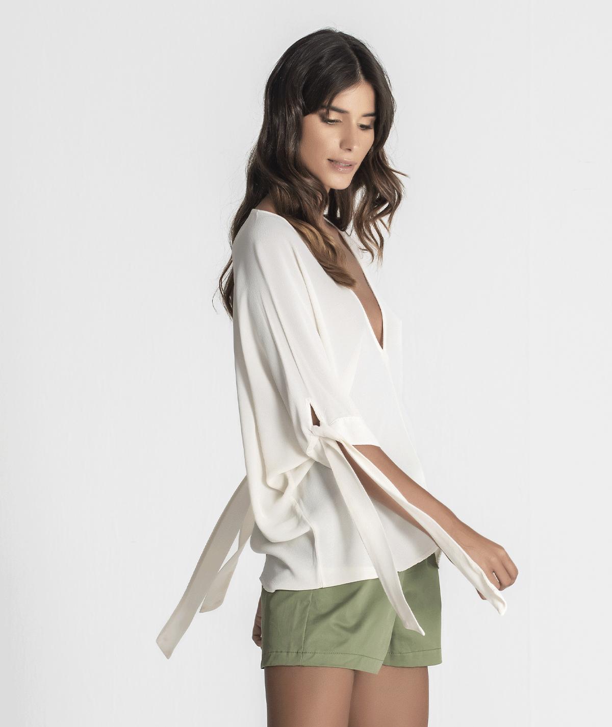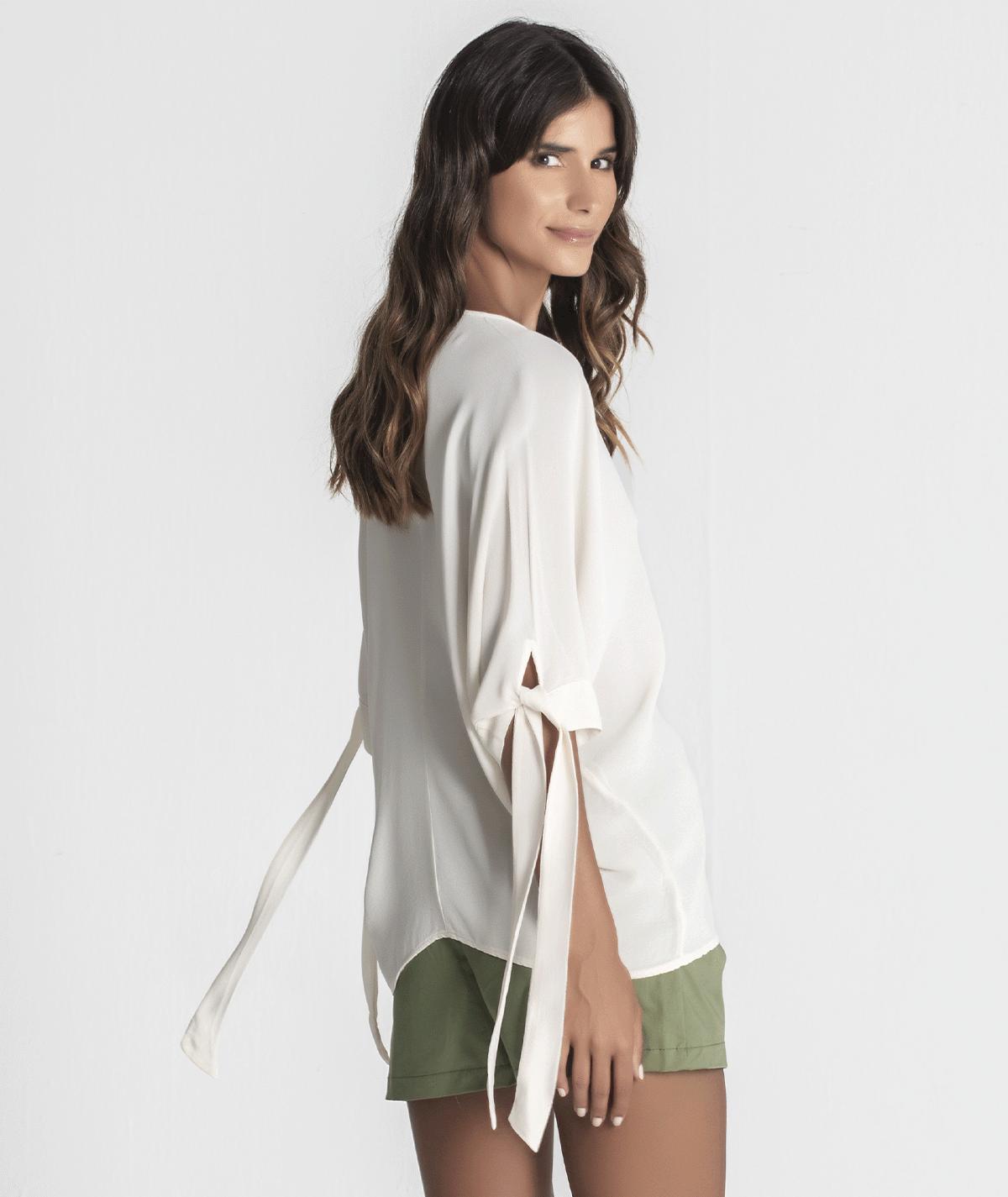 Blusa Crepe C/ Atilhos Mangas