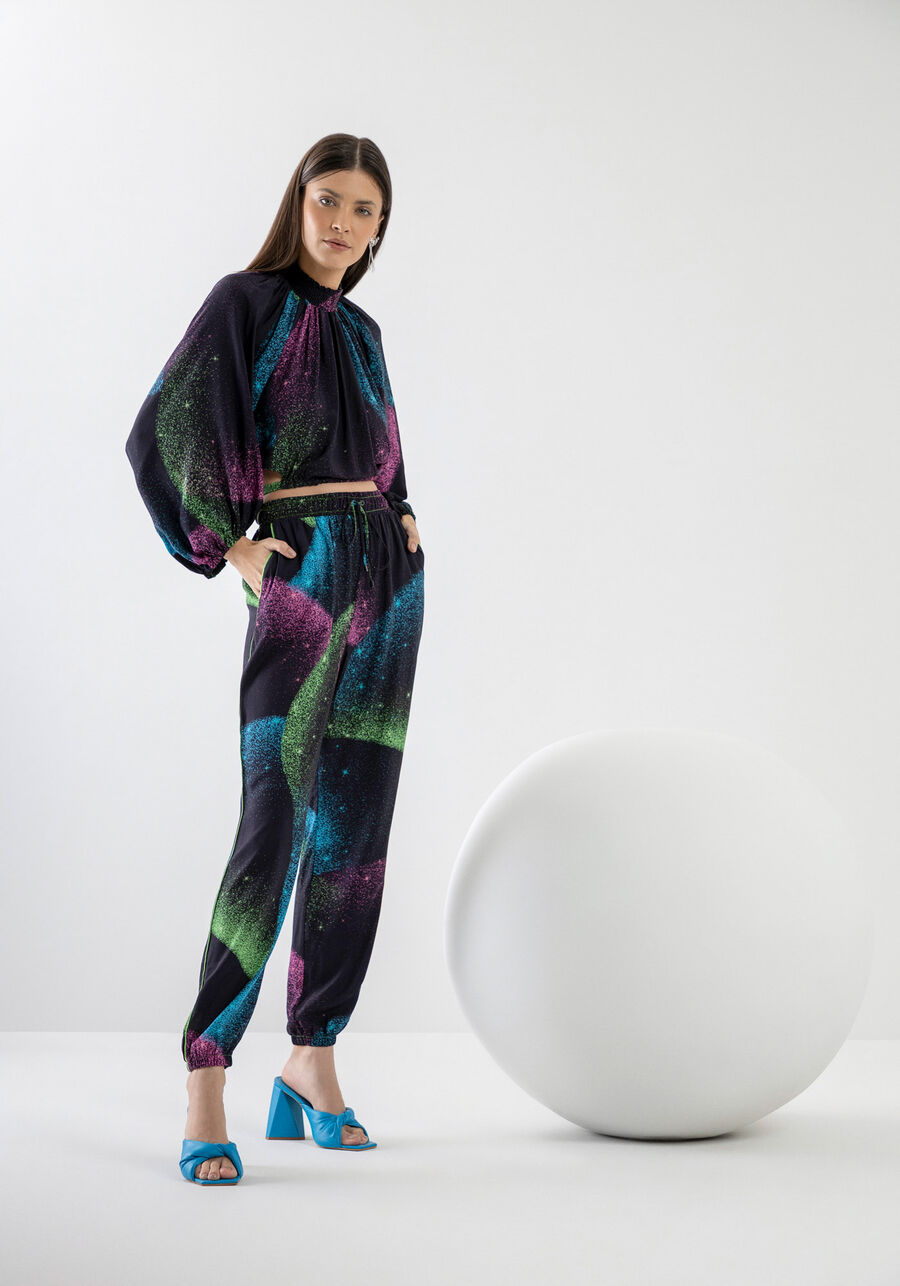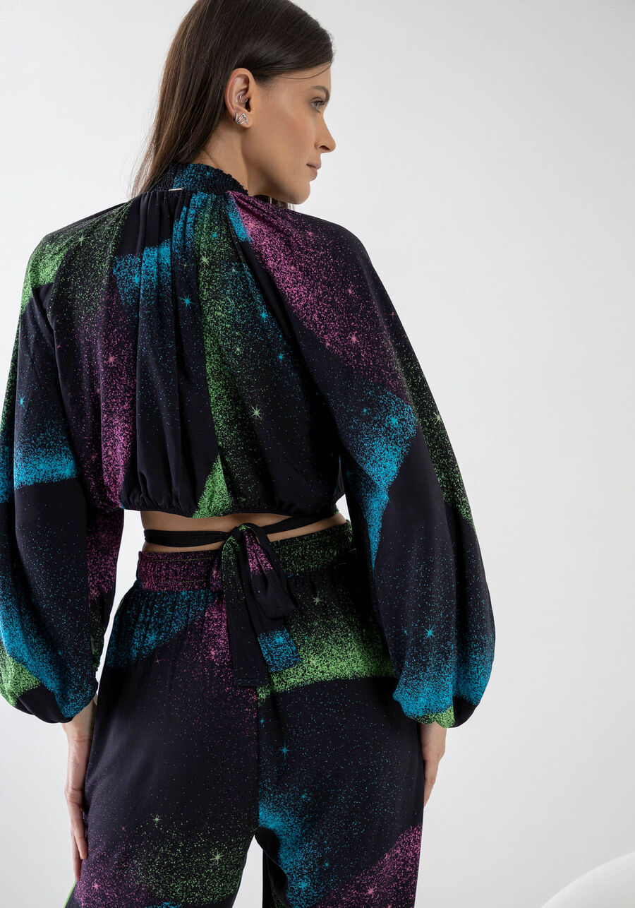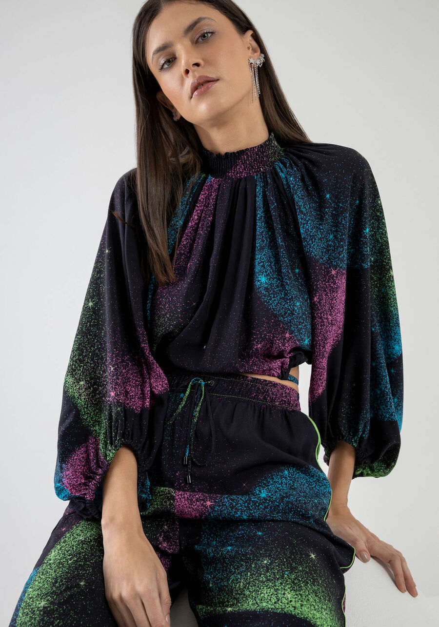 Blusa Meia Gola Estampada Manga Bufante