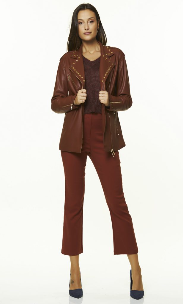 Blusão Ecopele C/ Cinto / Tachas Douradas