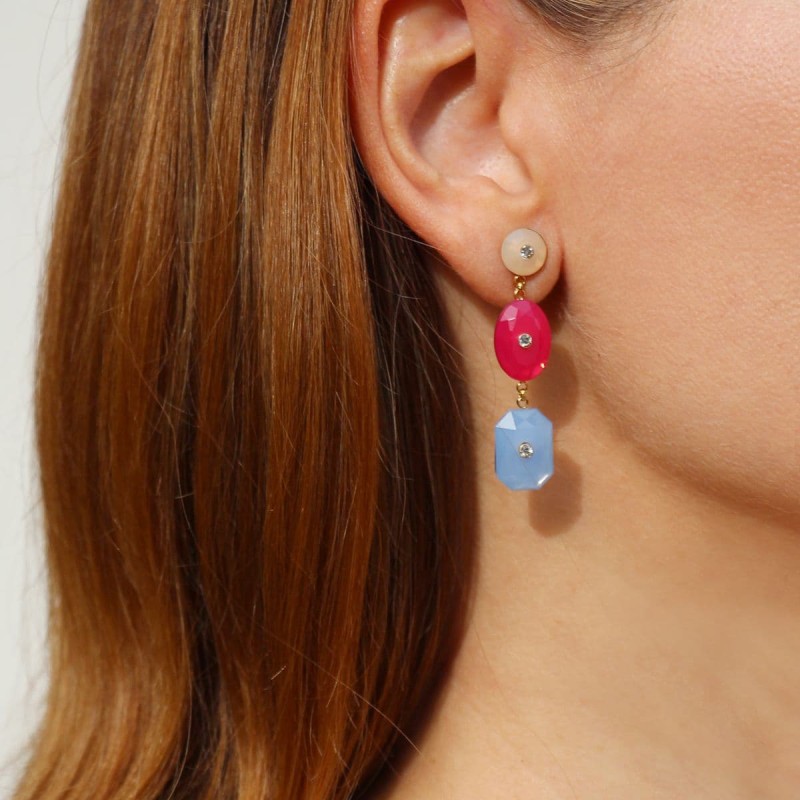 Brinco Longo C/ 3 Pedras Color