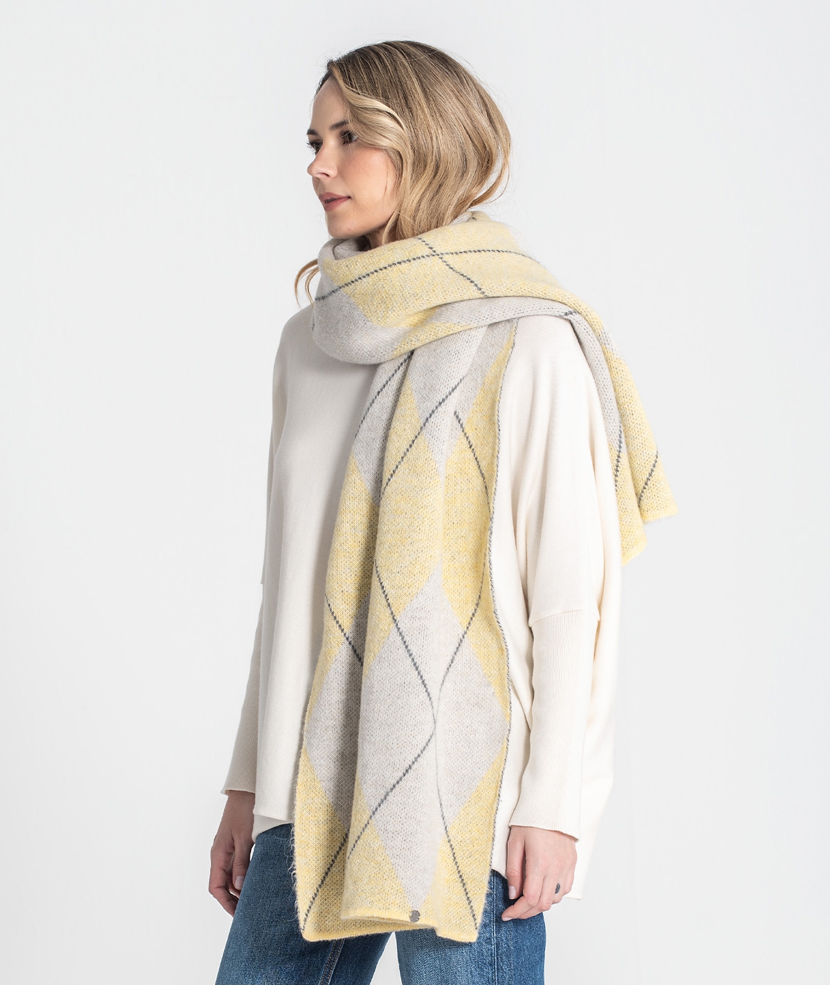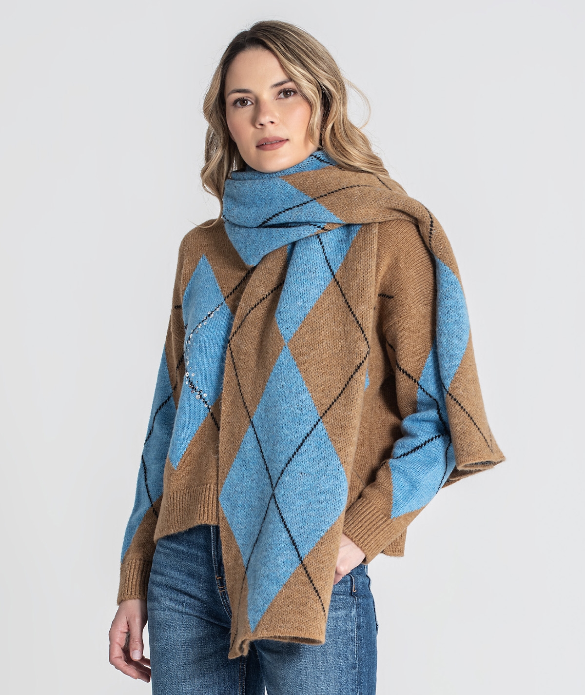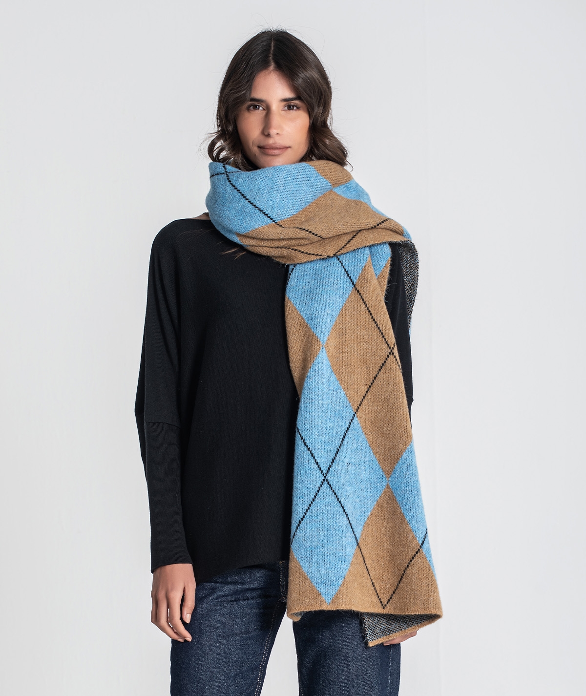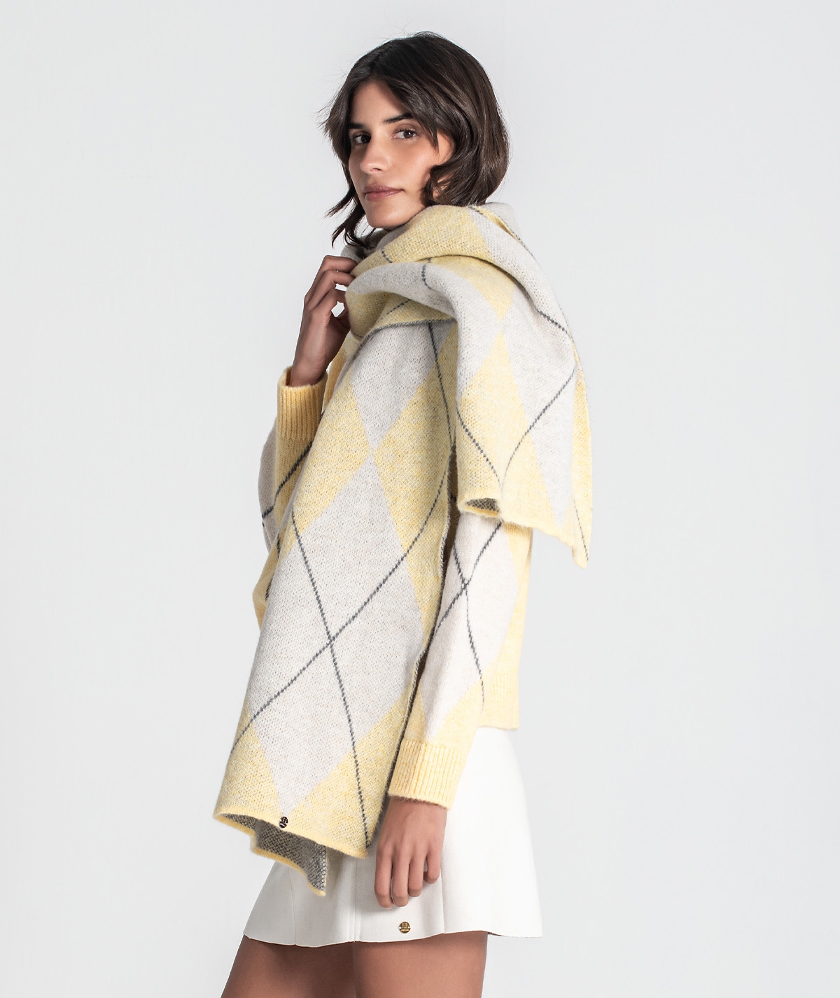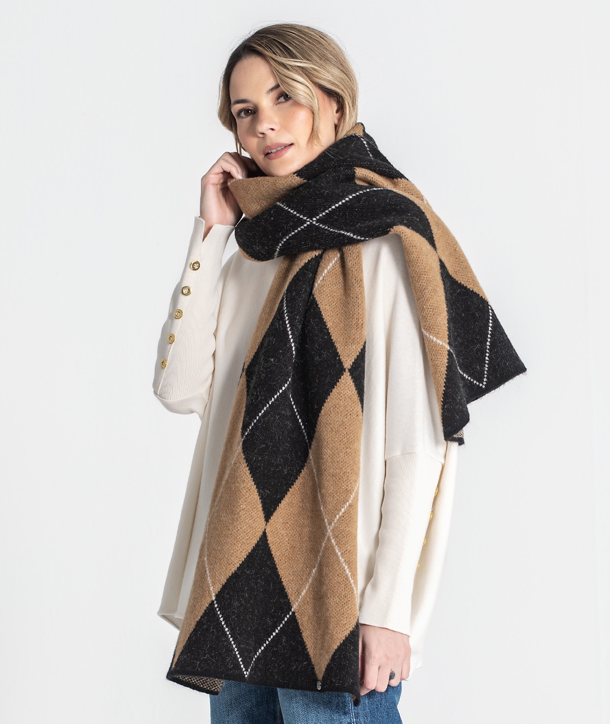 Cachecol com estampa jacquard.