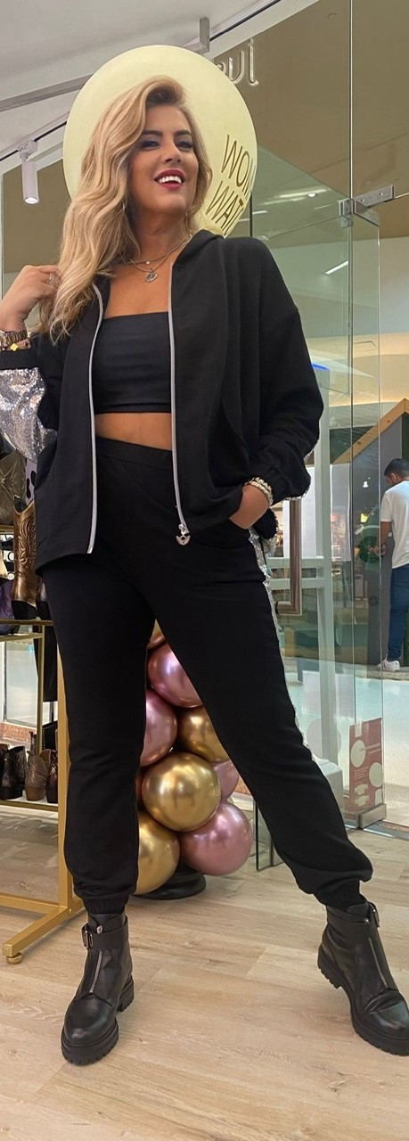 A calça medida M/L veste perfeitamente para quem também veste S/M.