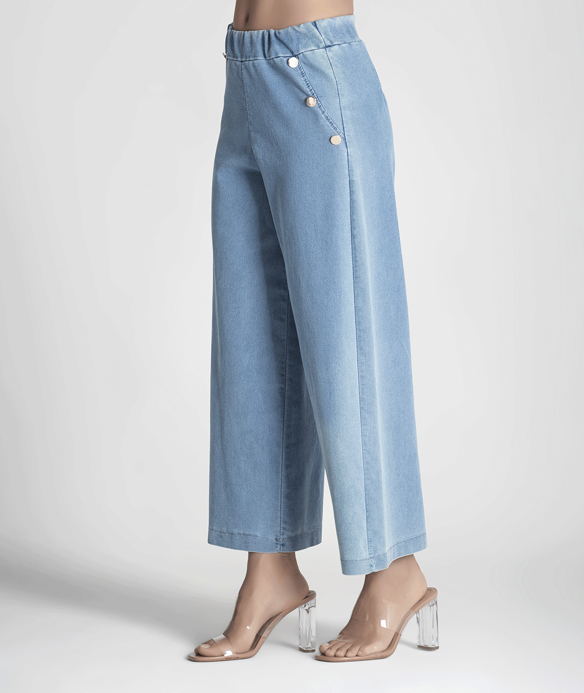 Calça Jeans Cullote C/ Botões Or Bolsos
