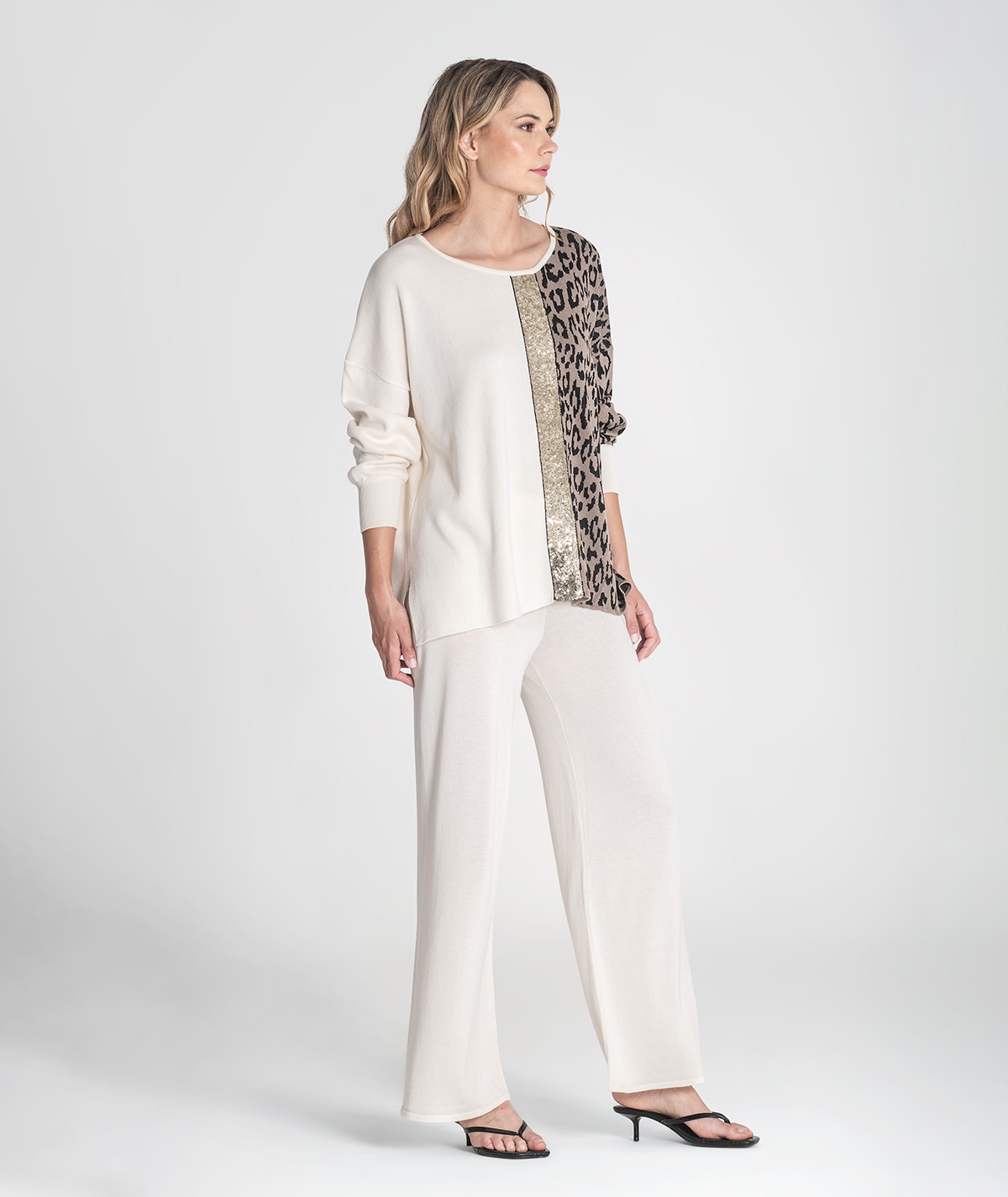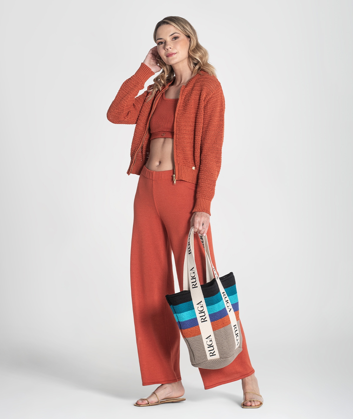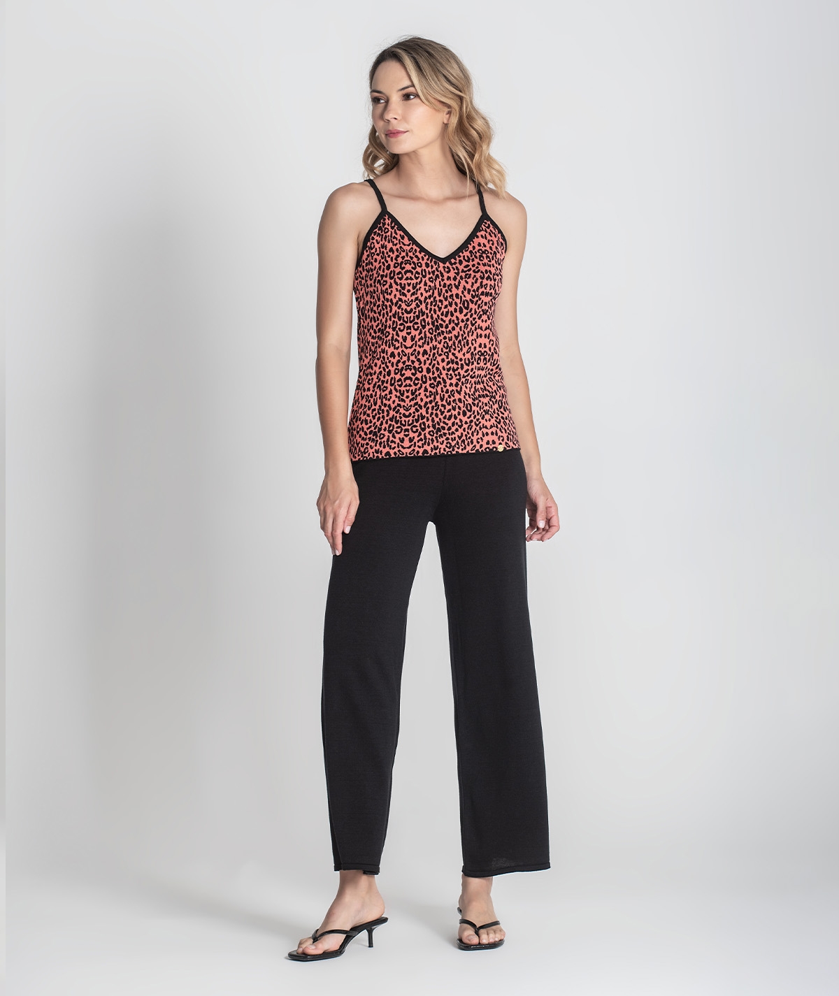 Calças básicas com elástico na cintura.