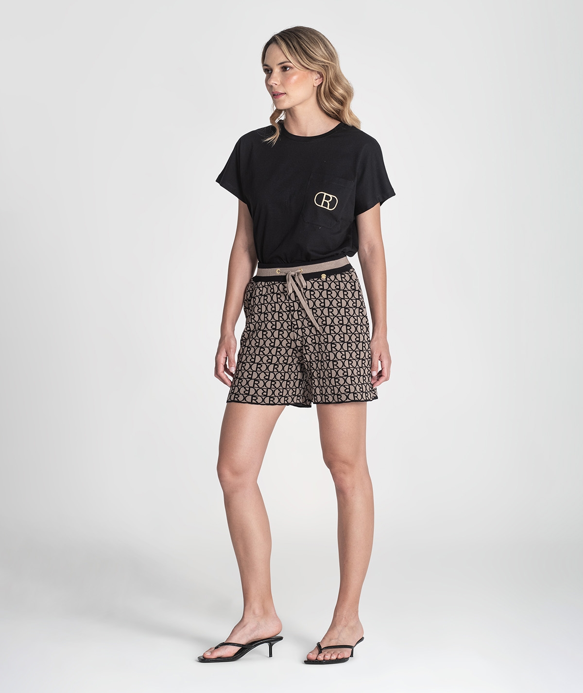 Calções com jacquard r. Ajusta na cintura com cordão e elástico.