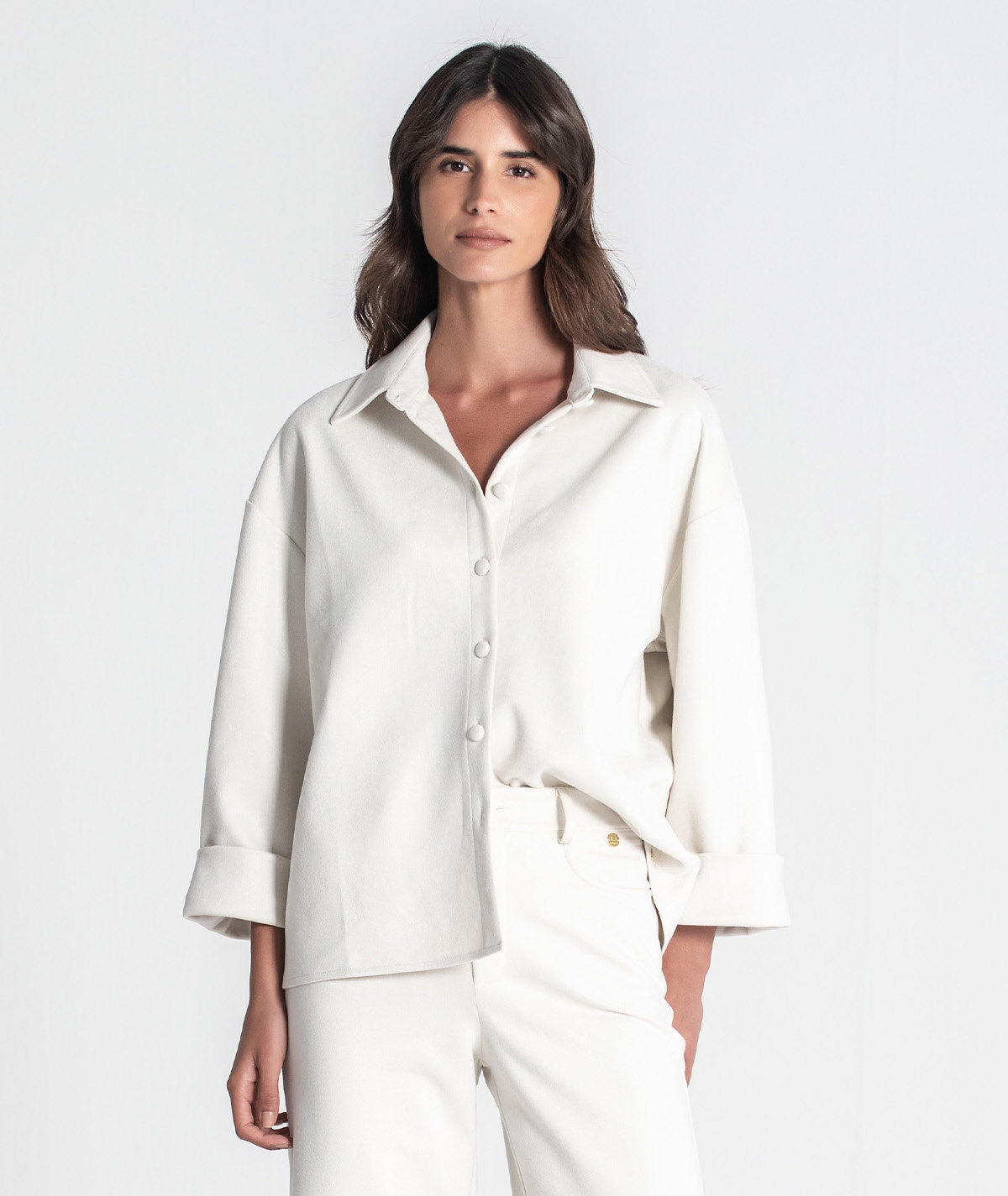 Camisa oversize com botões na frente.