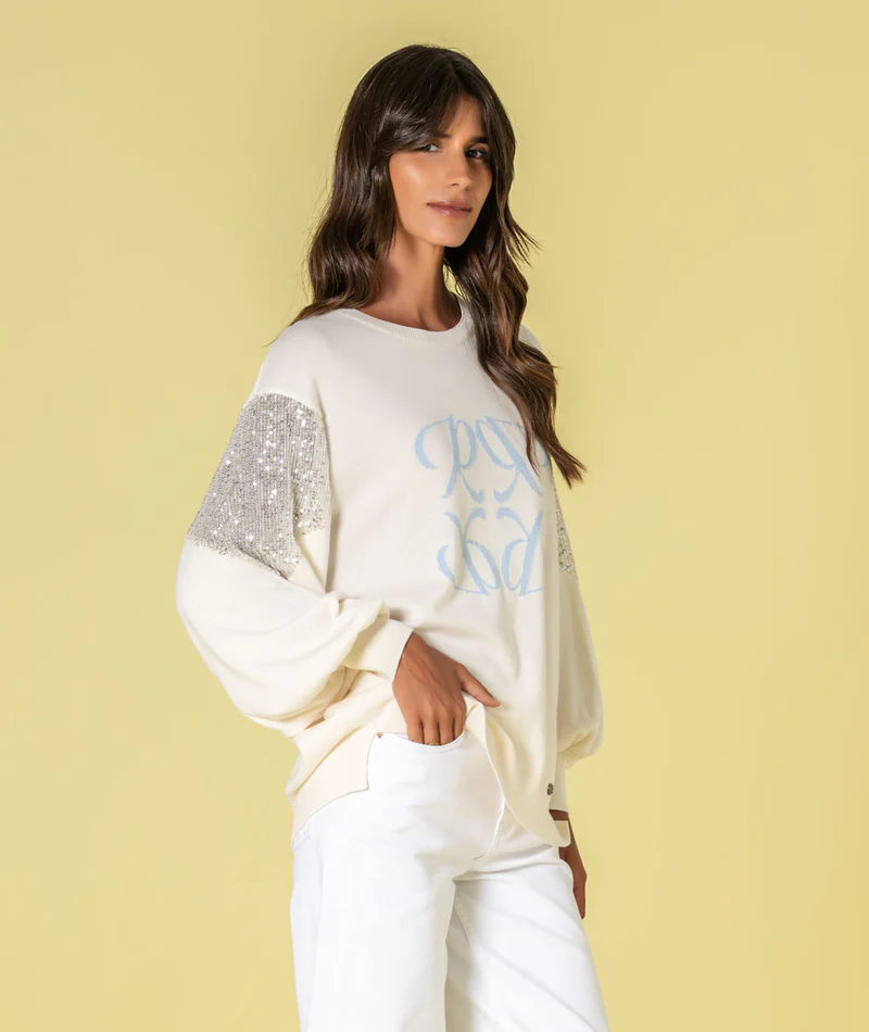 Camisola com lantejoulas.