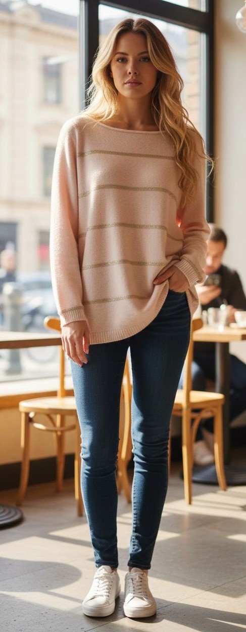 Camisola Decote Barco Riscas Lurex