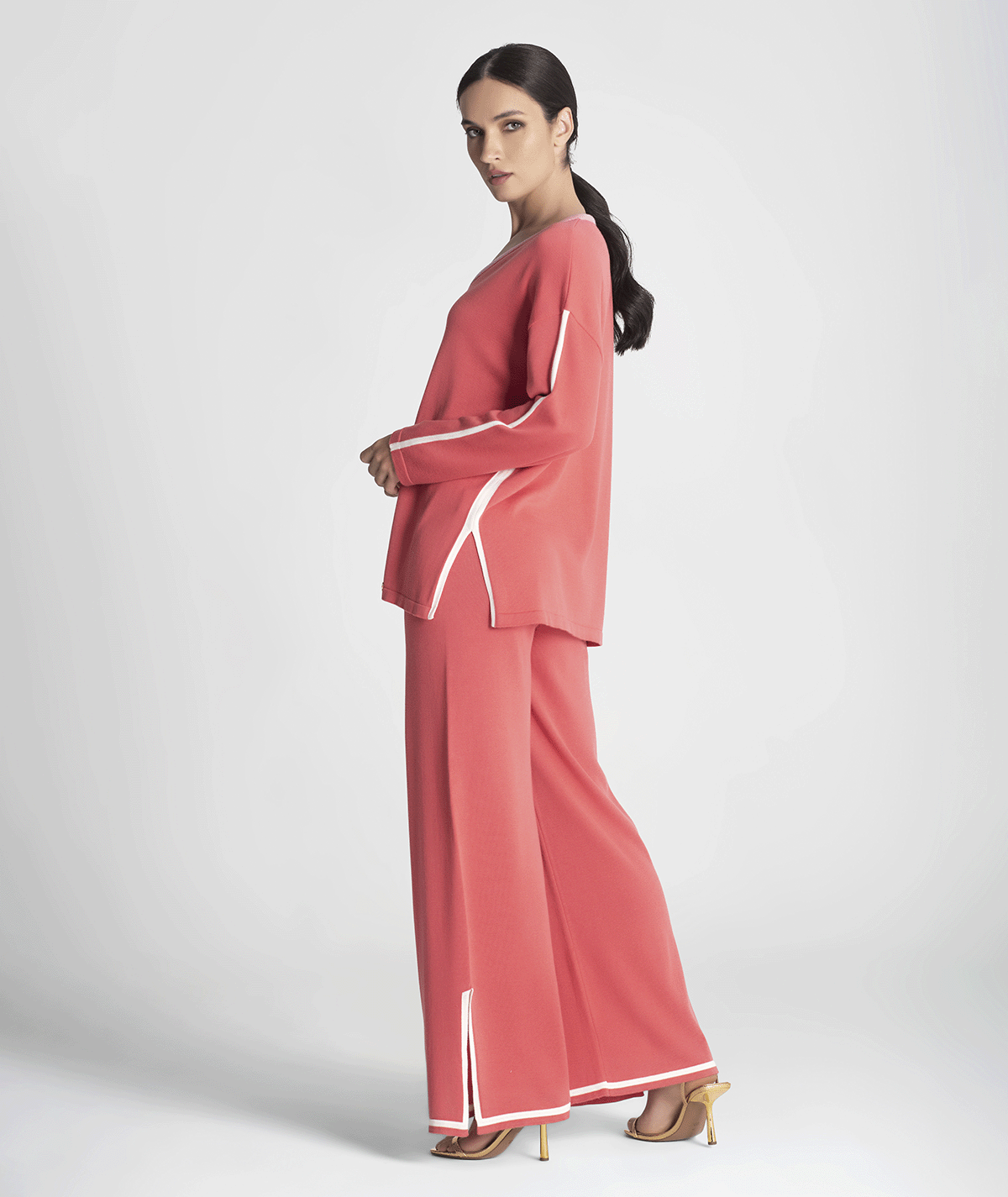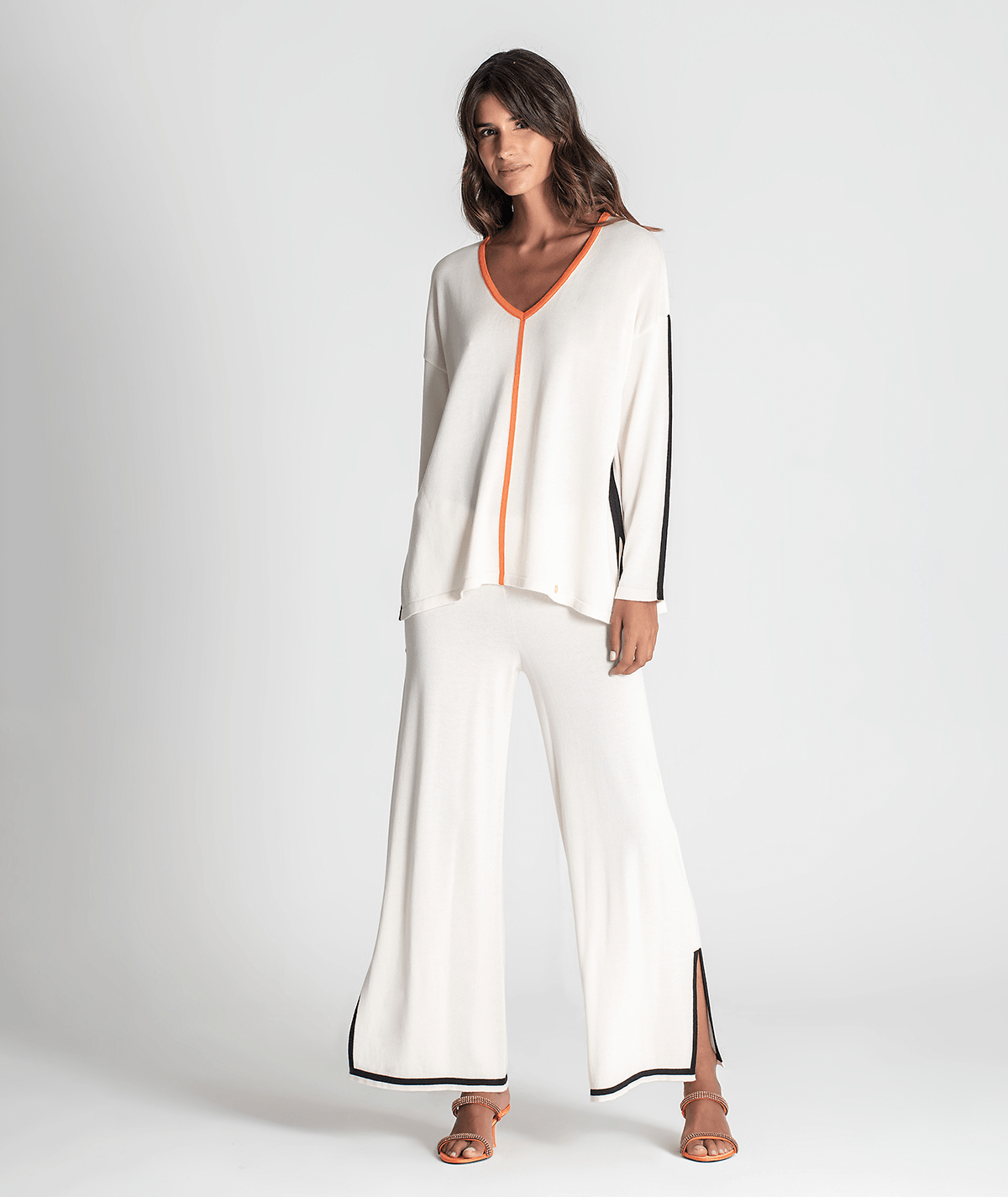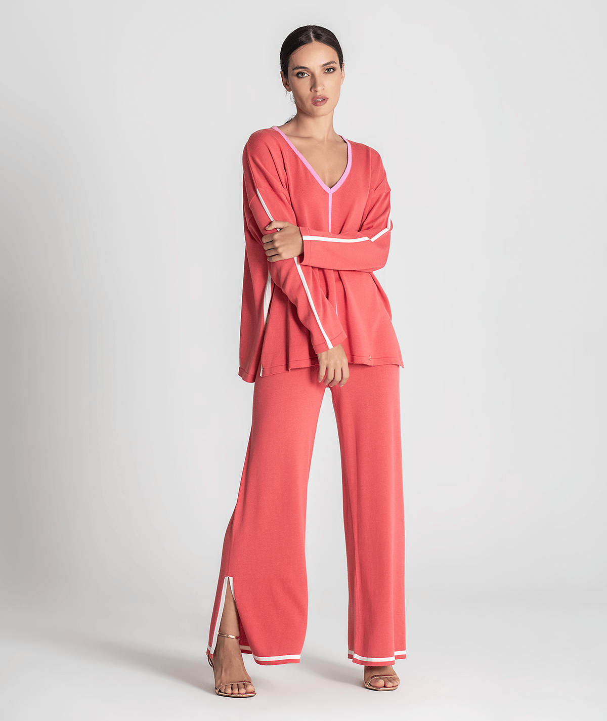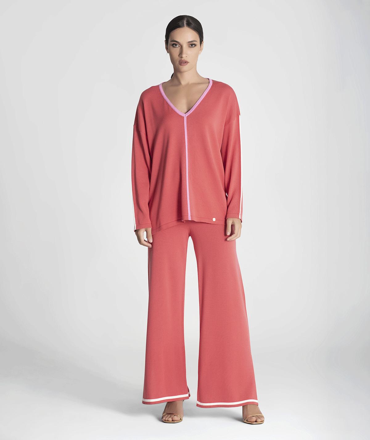 Camisola Decote V C/ Contorno Cor