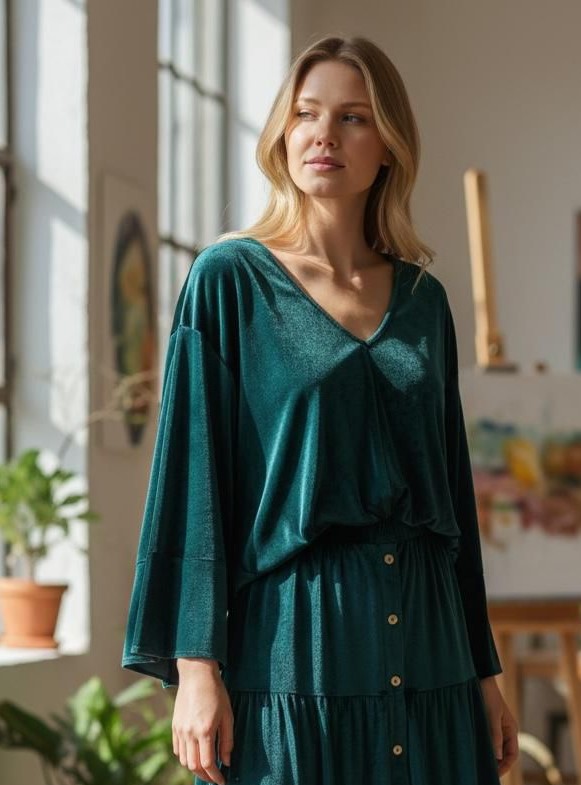Camisola Veludo Decote V Oversize
