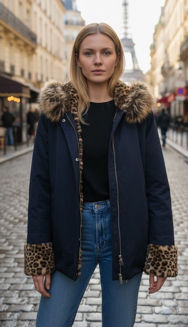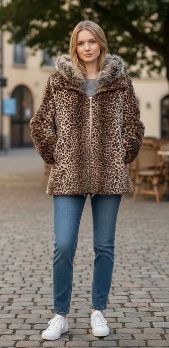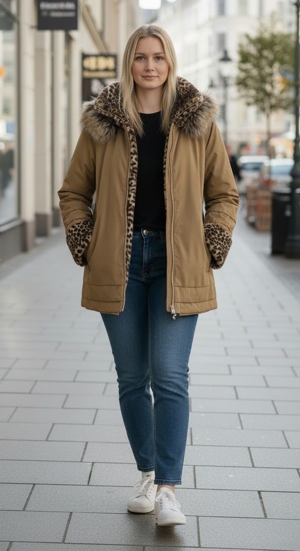 Casaco Erin Reversível Impermeável C/ Pelo Tigrado