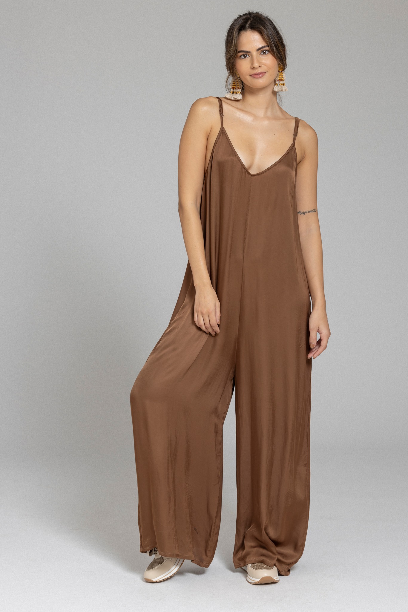 Macacão Solto Cetim C/ Alças Ajustáveis