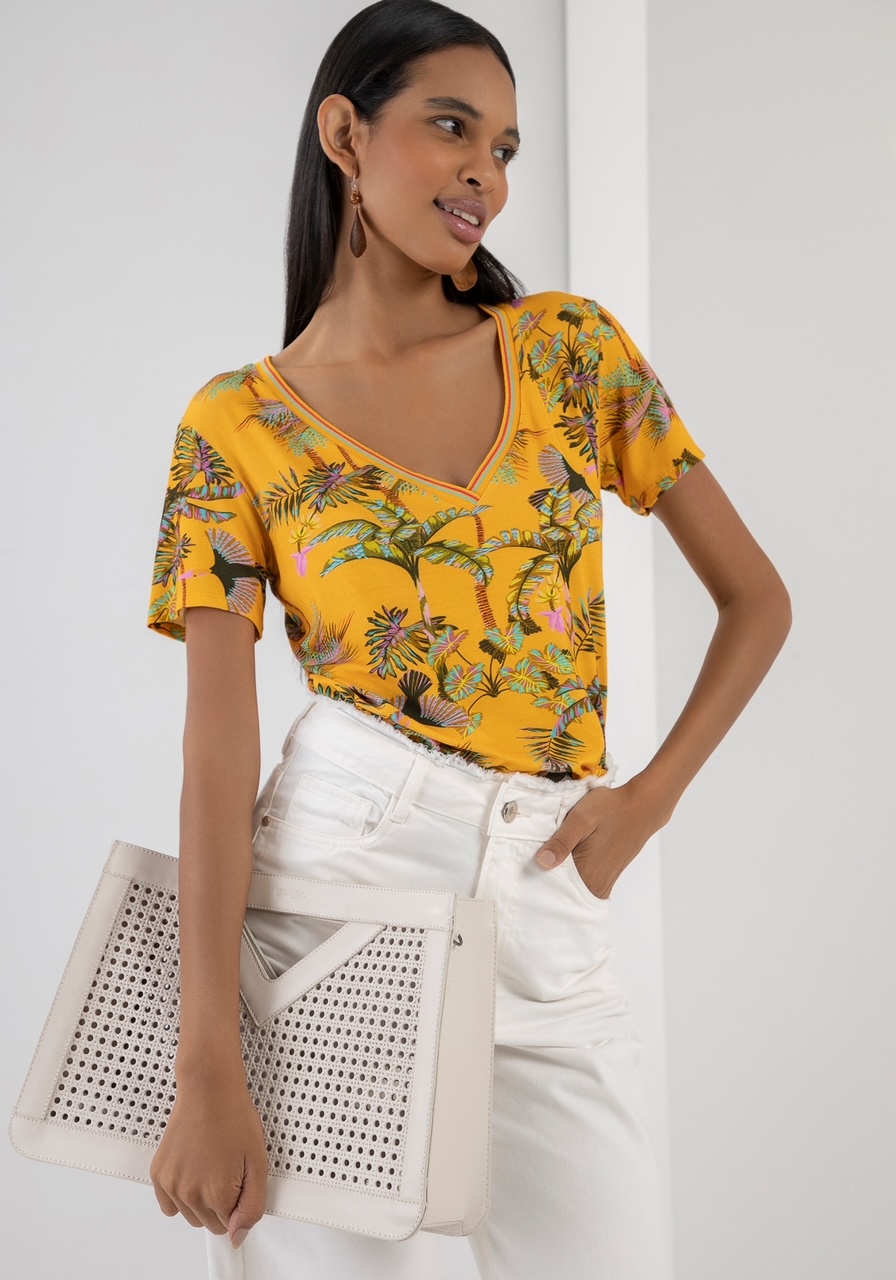 T-Shirt Estampada Decote V