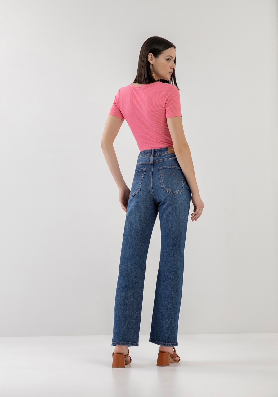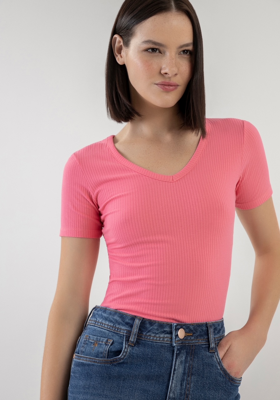 T-Shirt Malha Canelada Decote V