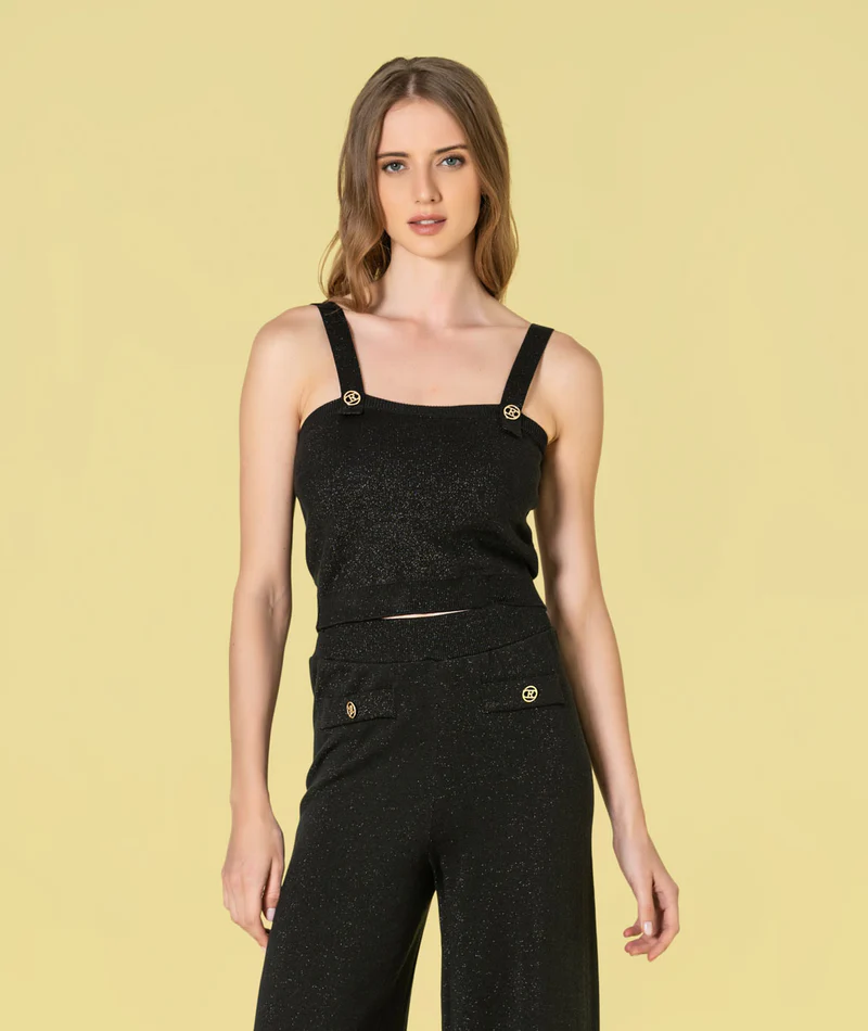 Top alças com botões.