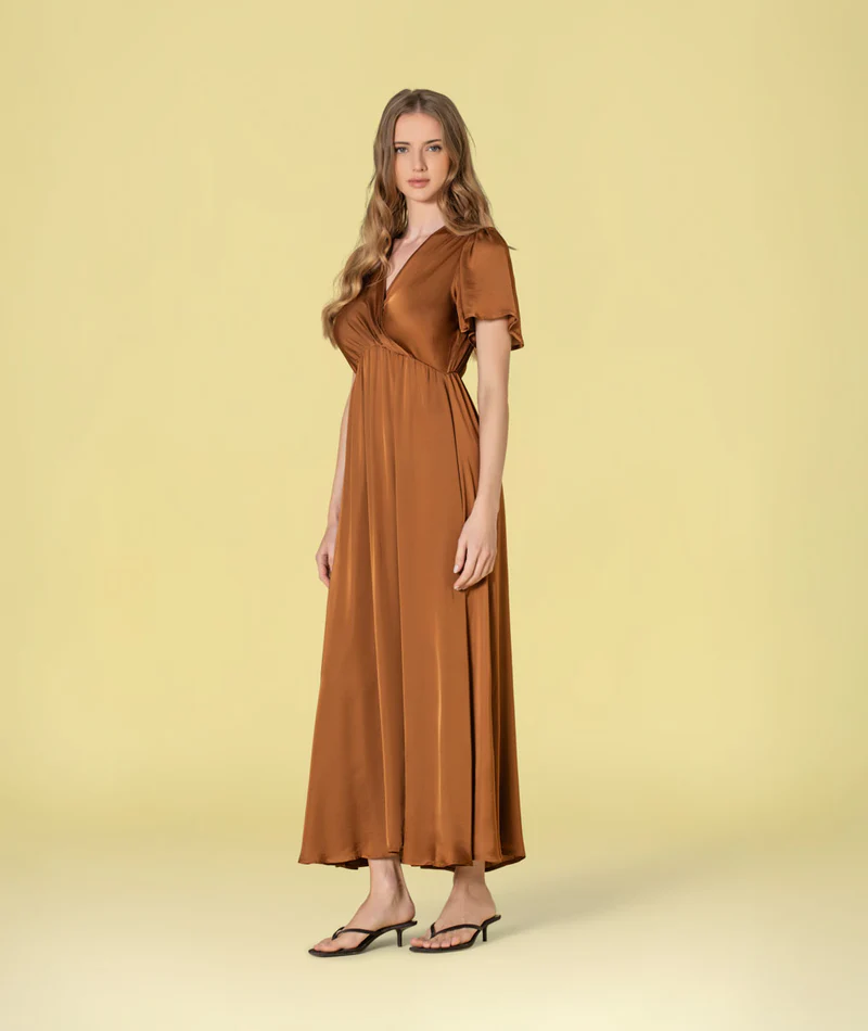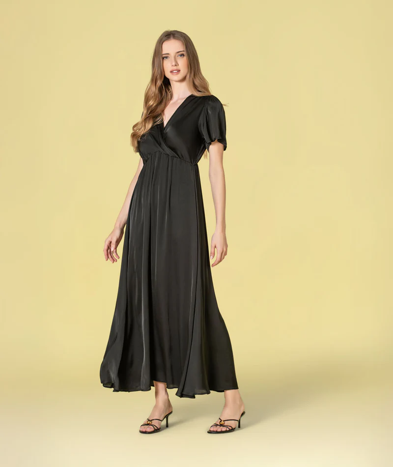 Vestido Acetinado Cruzado