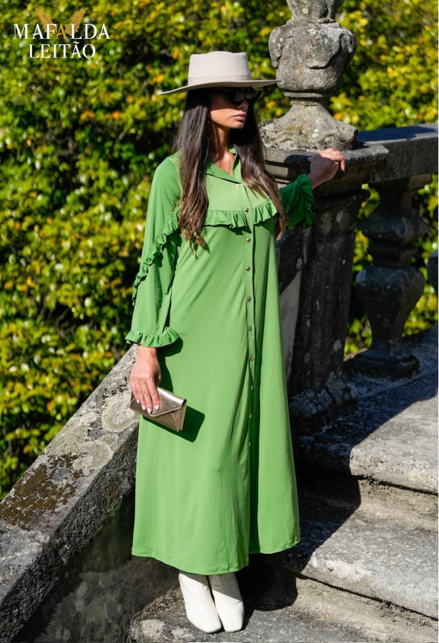 Vestido Camiseiro C/ Folho Peito / Manga