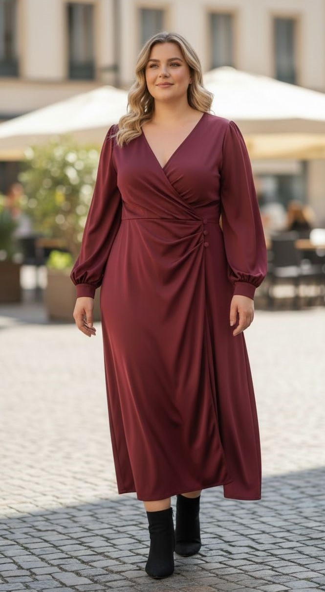 Vestido Drapeado Cruzado C/ Botões