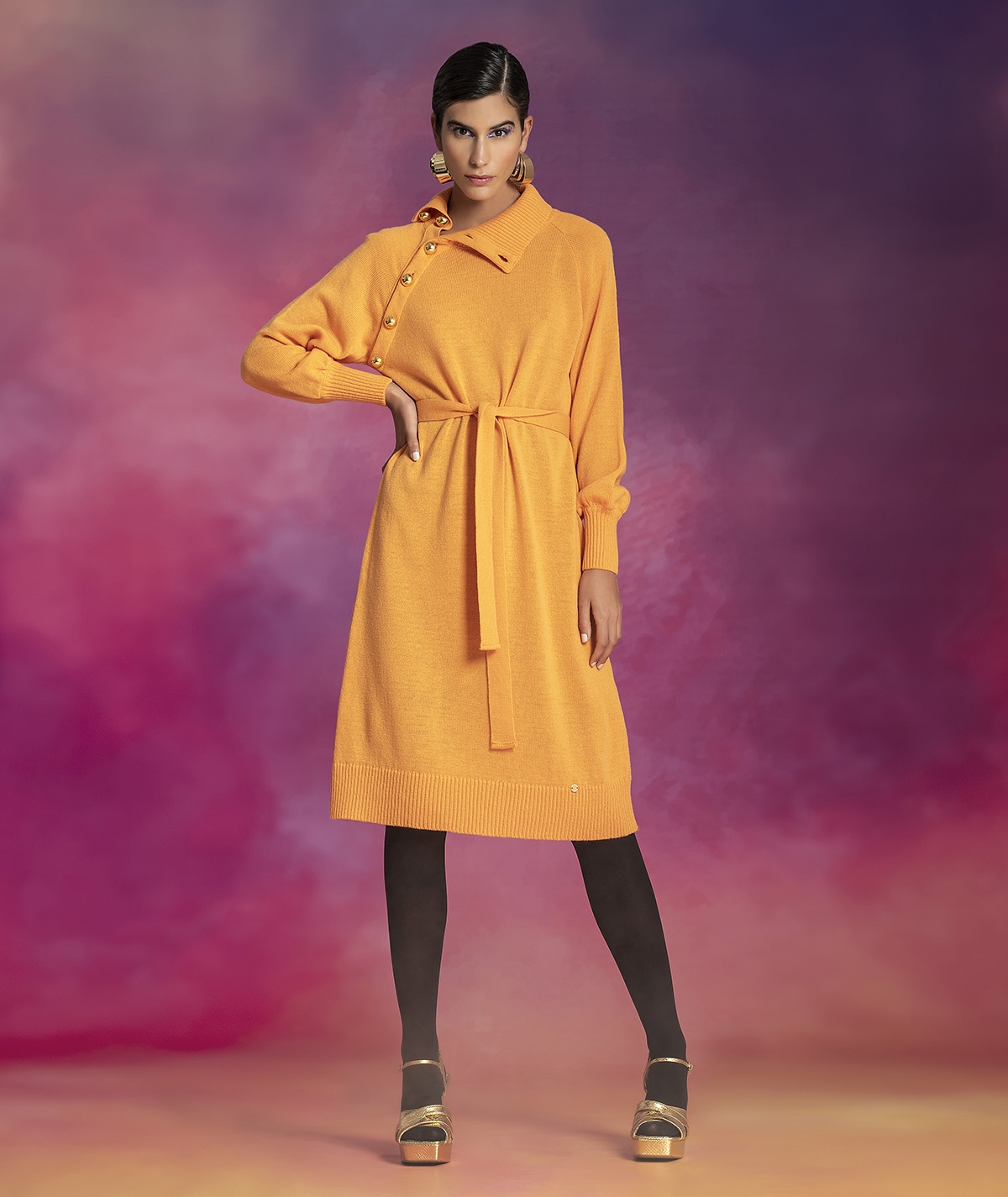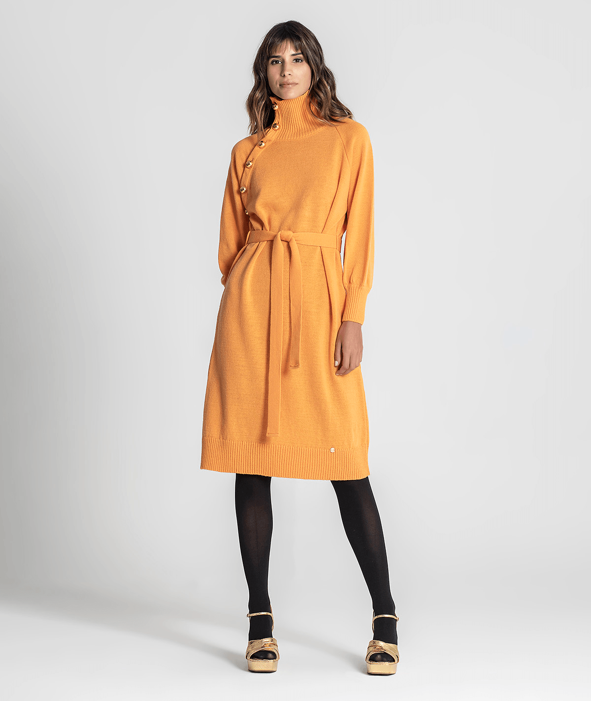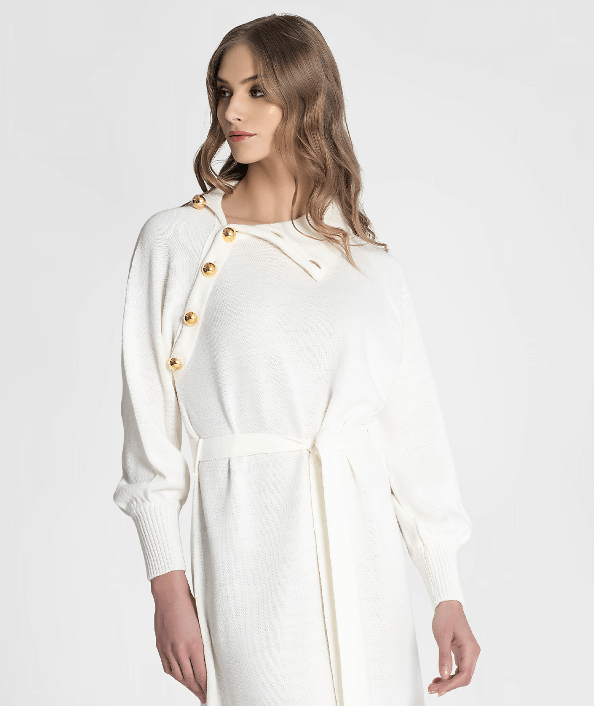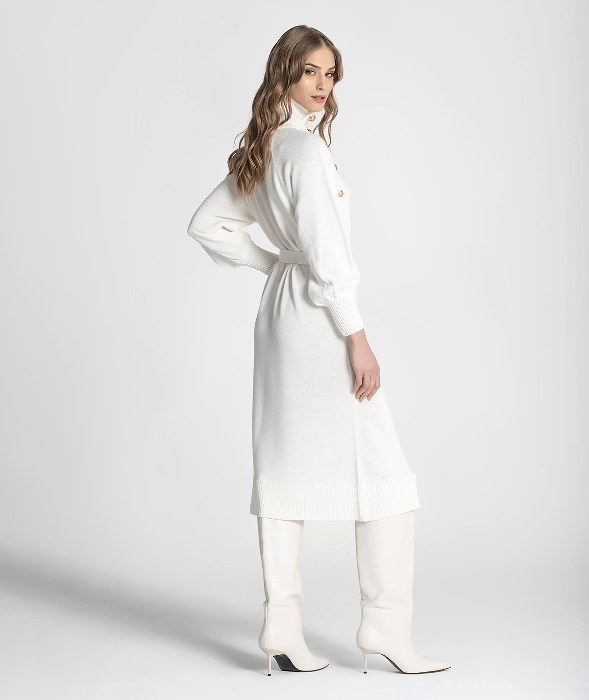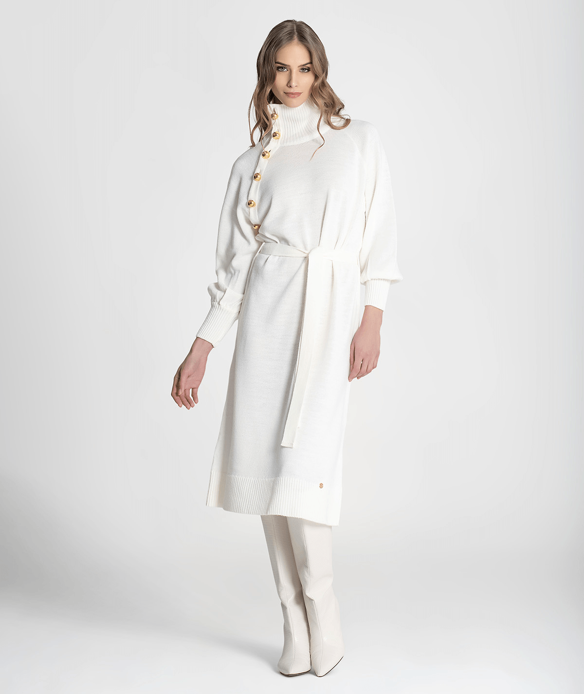Vestido Gola Alta C/ Botões Ombro