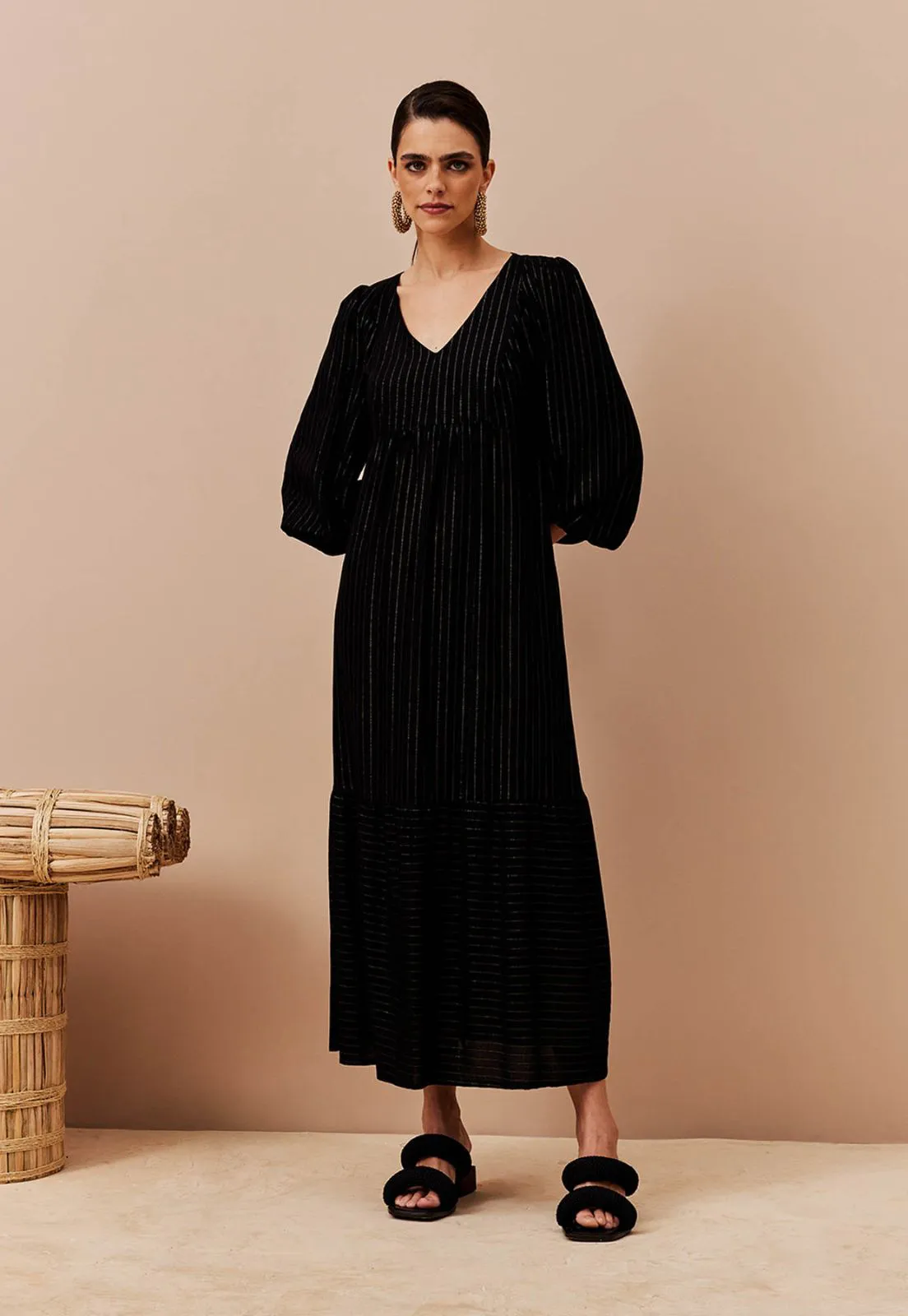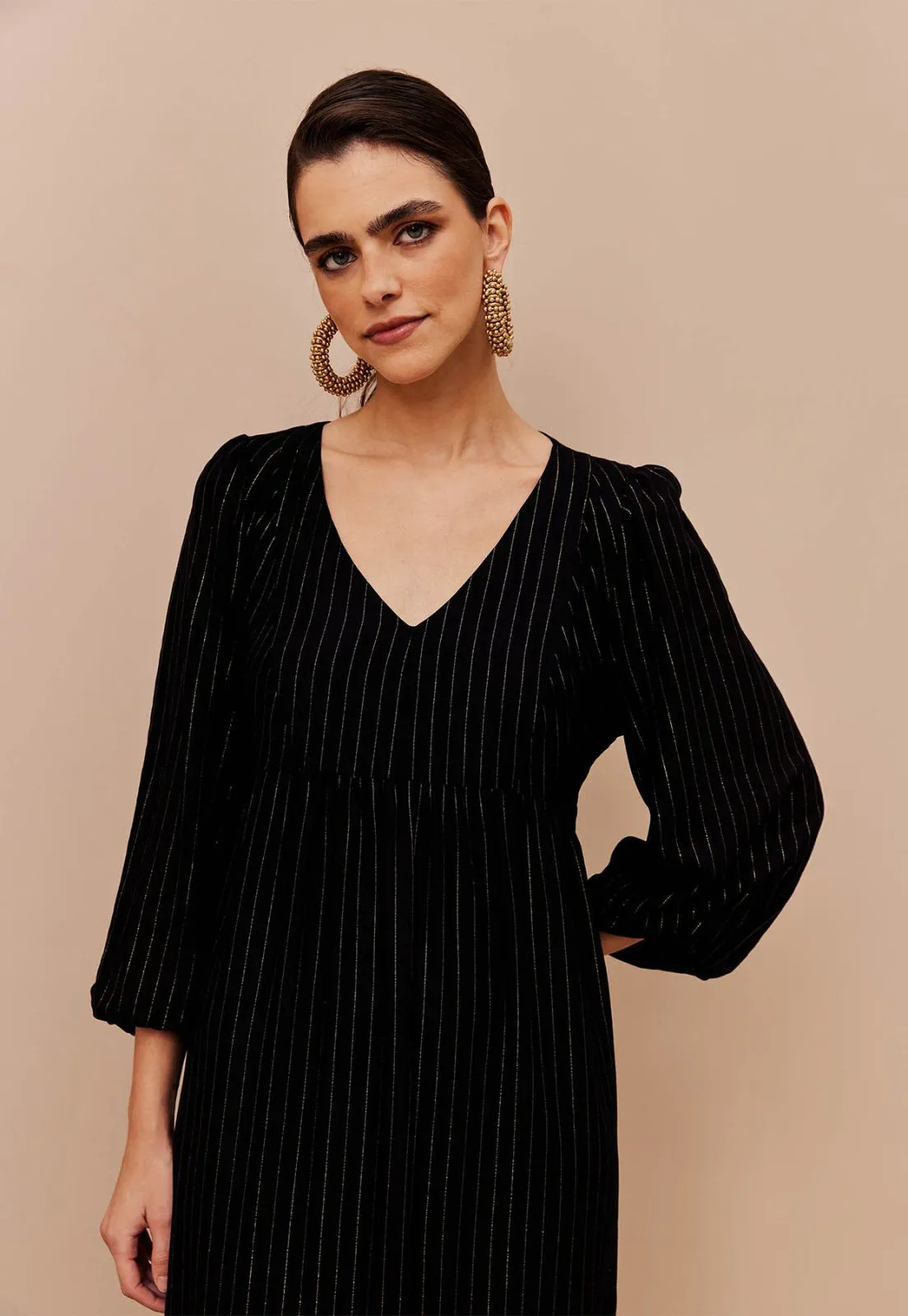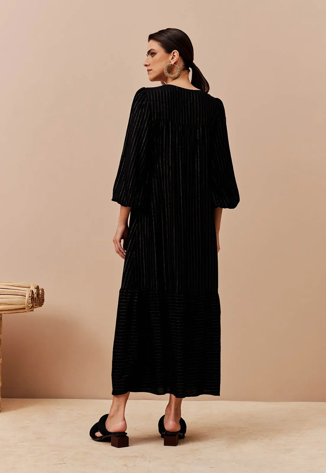 Vestido Manga Ampla C/ Fio Lurex