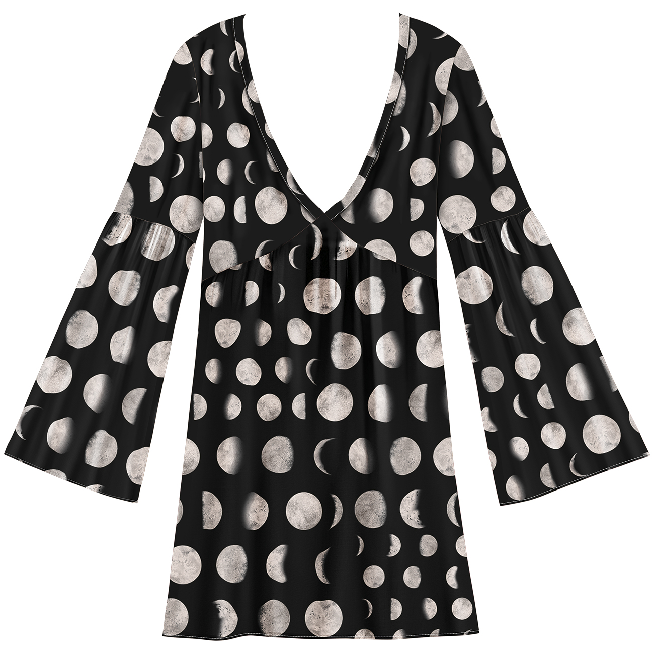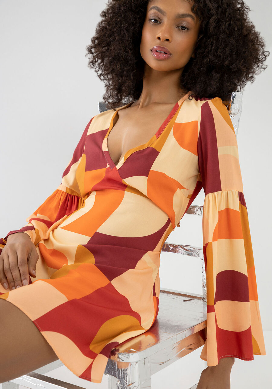 Vestido Midi Manga Flare Costas Descobertas